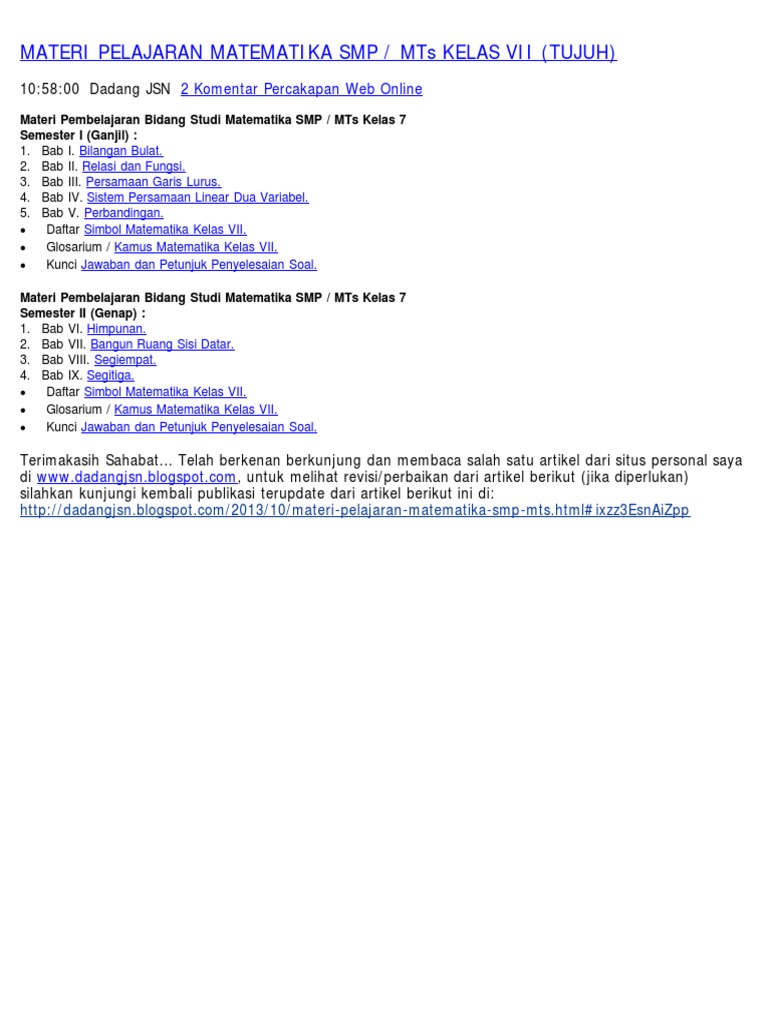 Materi Matematika Kelas 7 Semester 1 : Rpp Daring Matematika Kelas 7 Semester Ganjil Kurikulum 2013 Tahun Pelajaran 2020 2021 Didno76 Com : Selamat datang kembali di channel pak benni.