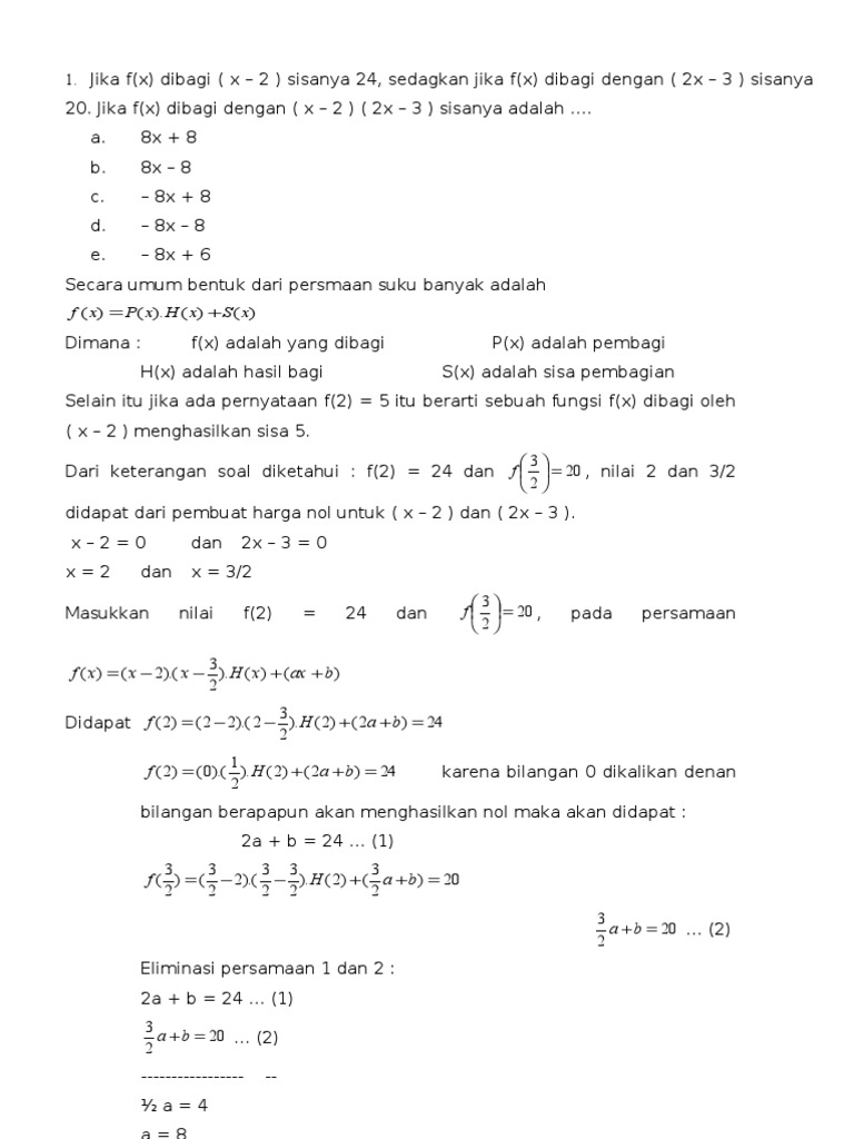 Soal dan pembahasan pembagian suku banyak. Check spelling or type a new query. Maybe you would like to learn more about one of these? We did not find results for: