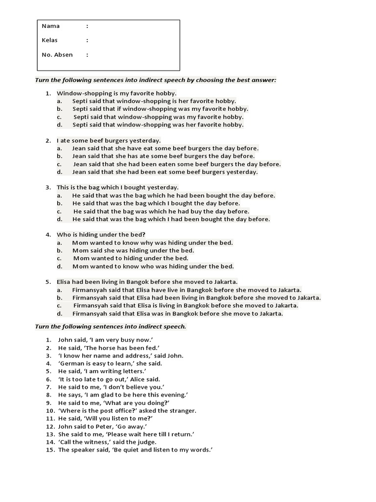 Soal direct indirect pilihan ganda beserta jawabannya. Check spelling or type a new query. We did not find results for: Maybe you would like to learn more about one of these?