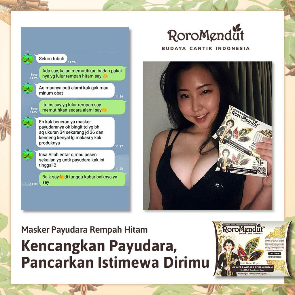 masker payudara ( new formulation ) rp 30,000.00. roro mendut masker payudara rempah hitam 20gr manfaat masker payudara rempah hitam : masker roro mendut pengencang payudara adalah salah satu produk lulur dan masker roro mendut yang terbaik yang terbuat dari bahan bahan. Baleomol adalah marketplace yang mempertemukan orang yang sudah mempunyai produk (supplier) dan orang yang tidak mempunyai produk (dropshipper) untuk dijual kembali ke platform lain walaupun tanpa harus stok produk. 1 box isi 5pcs masker rempah hitam. Gunakan roro mendut tansah waluyo minyak balur rempah herbal oil. Mengembalikan elastisitas kulit diarea payudara mencegah payudara kendur. Atau dapat digunakan sebelum pemakaian masker. Rutinkan maskeran dengan masker payudara rempah hitam roromendut. masker payudara rempah hitam roro mendut royal black spice breast mask mengencangkan dan memperindah payudara merupakan perawatan payudara tradisional khas kerajaan. Merupakan perawatan tradisional yang terbuat dari 99% herbal untuk membantu mengangkat kotoran & Dan kali ini saya juga mau ikutan nyobain tren skincare organik nih. Selain itu, warna kulit payudara yang tidak merata, bisa juga menggunakan masker payudara rempah hitam.